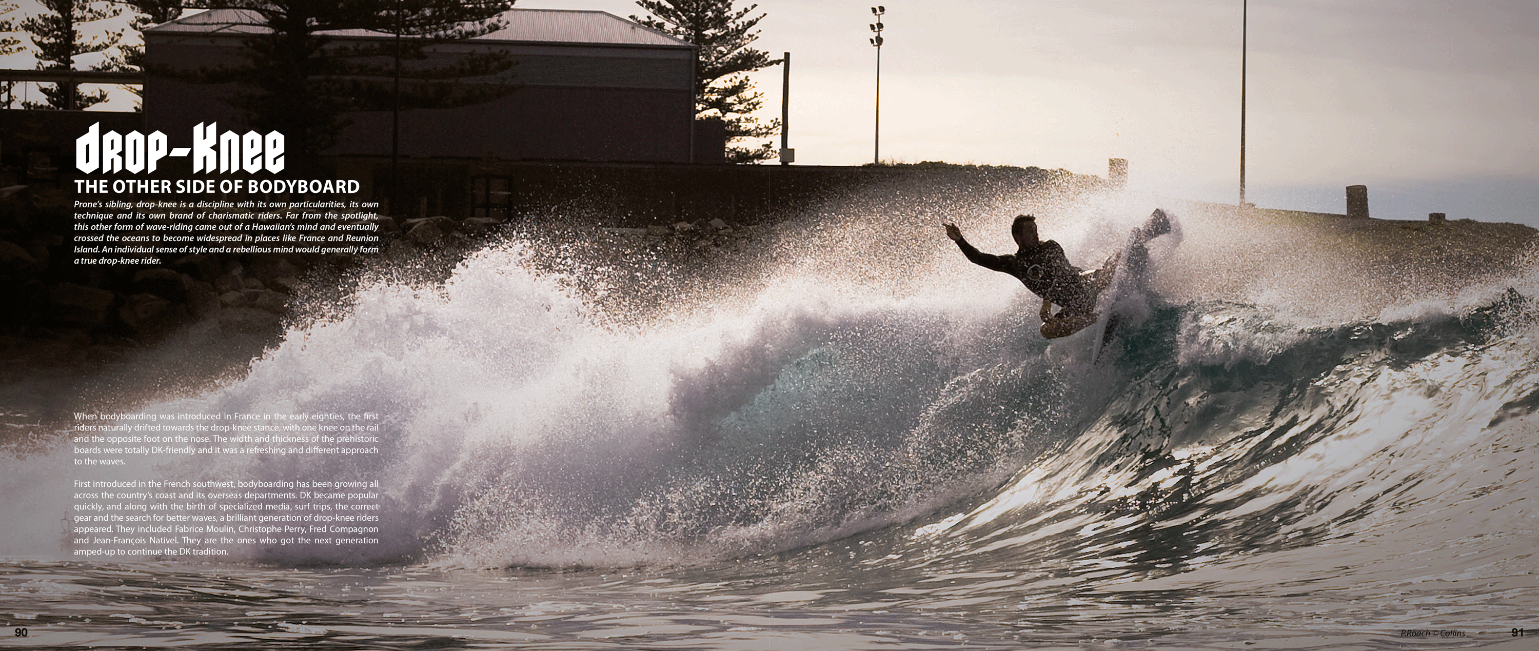 The bodyboarding book focused on rhythm and image pacing, supporting photographic storytelling while maintaining typographic consistency between the French and English editions.