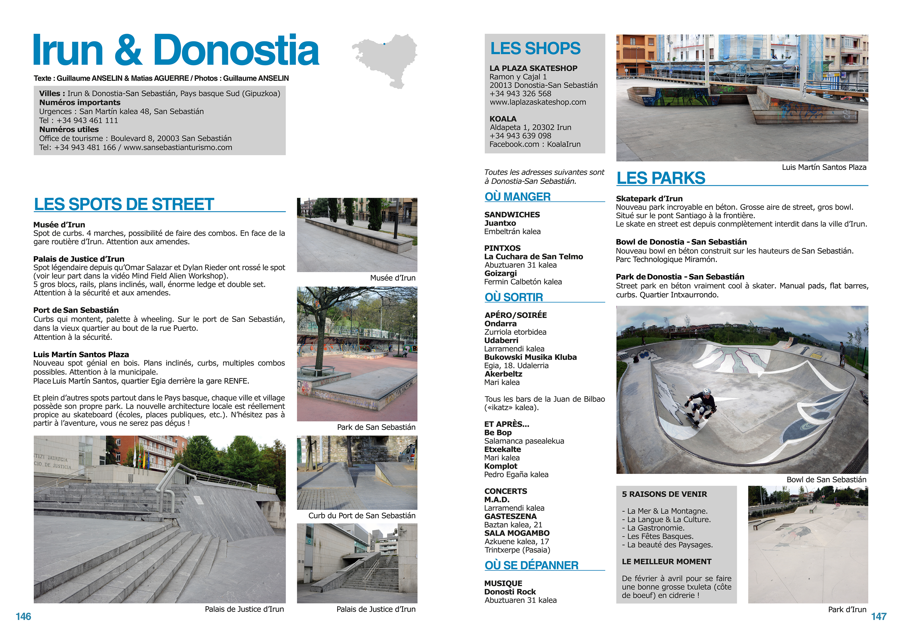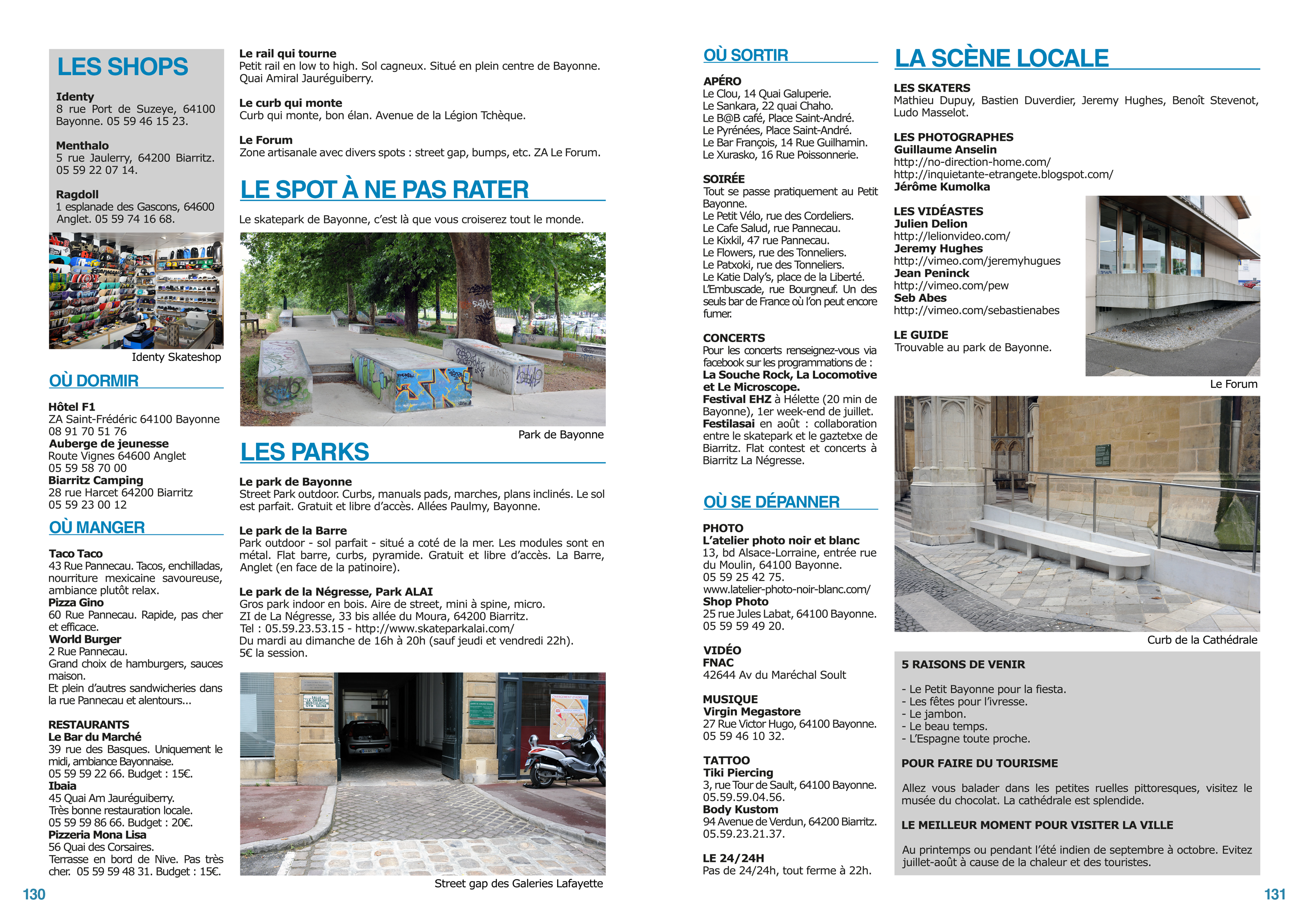 The skateboarding guide prioritised orientation and quick access to location-based information, organising dense practical content into clear modular layouts.