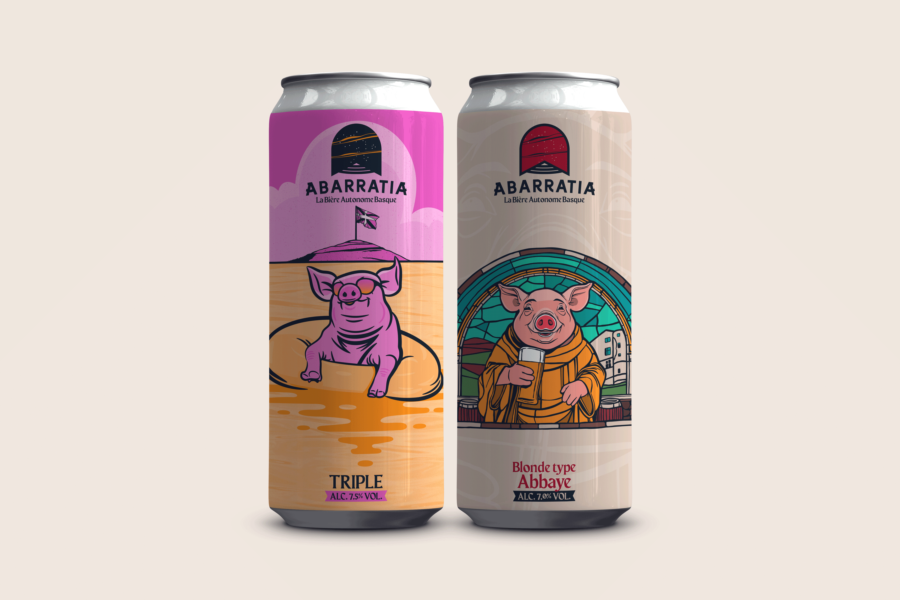 (EN) Craft beer label and merch designs for independent breweries across the Basque Country and Europe, each reflecting a distinct brand identity and visual language.(EU) Euskal Herri eta Europako garagardo artisauentzako merchandising eta etiketen diseinuak, bakoitzaren marka-nortasuna eta hizkuntza bisuala islatuz.